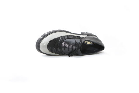 נעל בעבודת יד מעור טבעי, עם שרוכים בשילוב צבעים וסוליית טרקטור עבה המעניקה נוחות ובטחון בכל צעד, נעל עם נוכחות וסטייל.